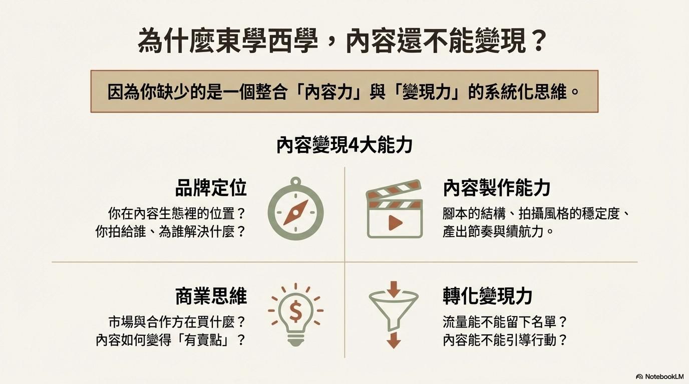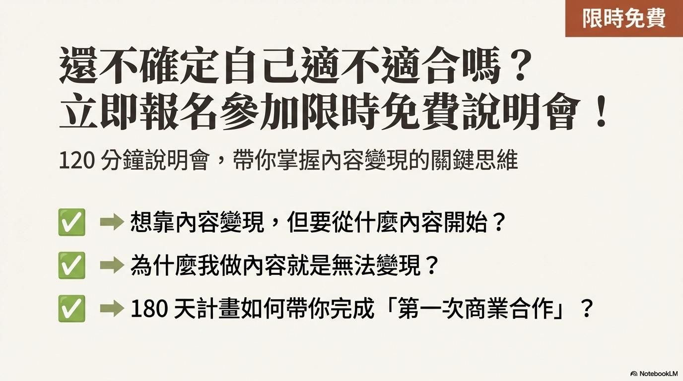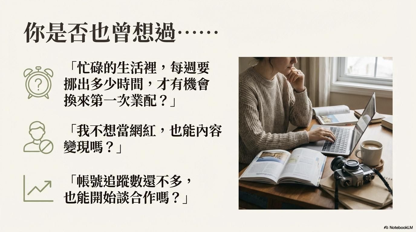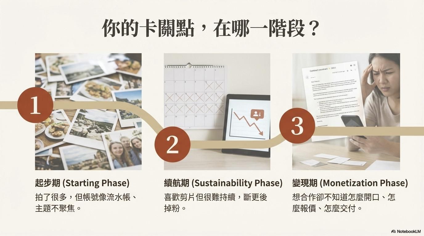 容易斷更、內容留不住粉絲,明明很用心卻始終等不到商業合作?很多時候不是你不夠努力,而是缺少一套可複製的變現路線。